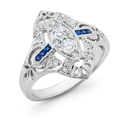 Vintage design 0.53 ctw round blue sapphire and round diamonds