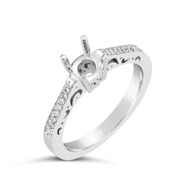 5.00 MM round center Engagement Rings with prong set diamonds down the shank also pave set diamonds side of the shank